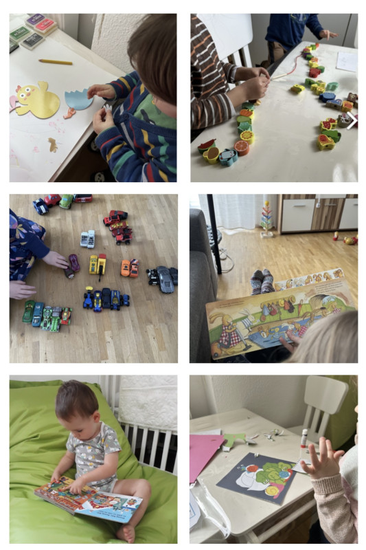 Auch das gemeinsame Betrachten von Bilderbüchern, das Vorlesen, Singen, Mitsingen, Reimen oder Rollenspiele gehören fest in unseren Alltag. So entwickeln Kinder nicht nur ihren Wortschatz, sondern auch Freude an Sprache und Ausdruck.